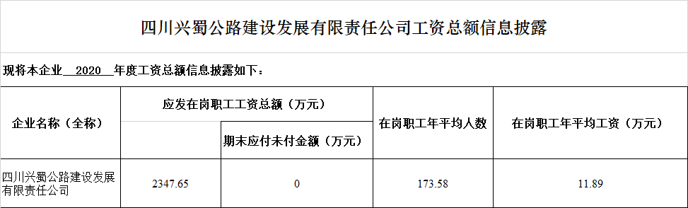 四川興蜀公路建設發展有限責任公司工資總額信息披露