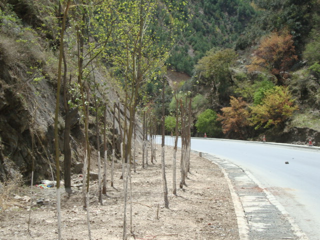 各個施工單位從3月初就開始集中施工設備和人員,對道路兩側邊坡的整理工作,整理工作完成后,就立即撒播草種,種植各種樹木,截止到5月底東雅段已完成移植灌木12680株;種植岷江栢4000株;金絲垂柳5006株;白金楊460株;云杉3500株;本地楊 3760株;撒播草種141452平方米。雅紅段已完成綠化面積8萬余平方米,種籽發芽率均在90%以上。紅海段已完成花草播種約450000平方米,占總工程量的80%。