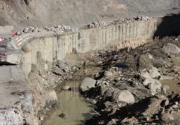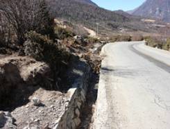 TJ4標K223+320-K223+440段,由于河面較寬,設計擋墻與既有擋墻緊貼,施工中容易造成既有干砌片石擋墻的垮塌,不利于施工作業人員的安全,保通任務也很繁重。為此,香格里拉代表處要求將擋墻外移1米,擋墻頂面降低60公分,日后再將其以弧面形式回填種植土,種植花草、矮灌的設計。讓過往的游客看不到高大聳立的擋墻,減少了臨邊臨河的危險。將五顏六色的花帶引入公路旁,讓“游客行徑在鮮花叢中”是我們的夢想。