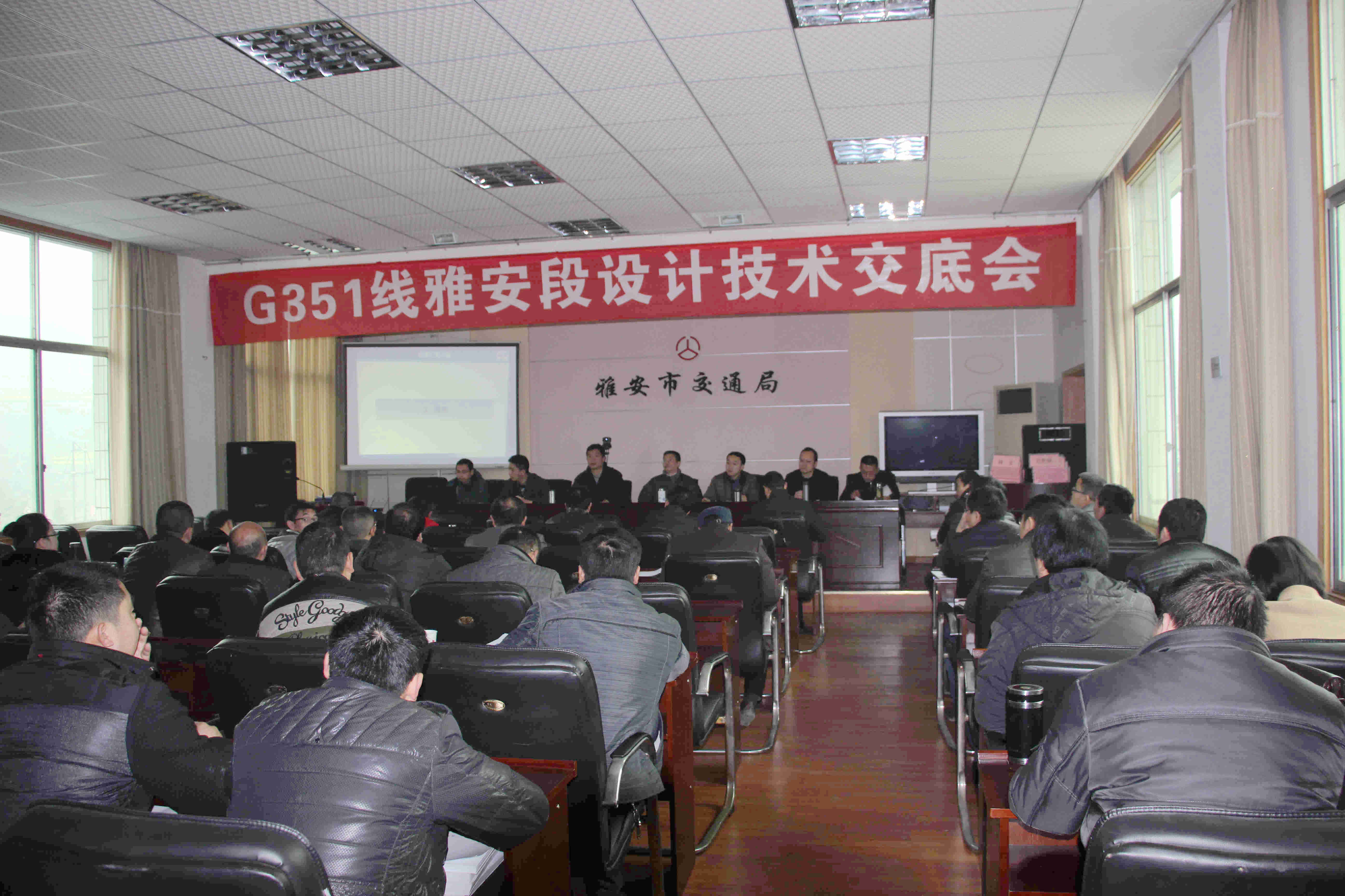 2014年2月25日上午,G351線雅安段設(shè)計(jì)技術(shù)交底會在雅安市交通運(yùn)輸局四樓會議室順利召開。會議由興蜀公司G351線雅安段指揮部副指揮長潘華主持,四川省公路設(shè)計(jì)院后期服務(wù)中心主任林順、總工辦馬洪生一行、雅安市交通災(zāi)后重建工作組工程部長趙飛勇以及G351線各標(biāo)段施工單位、監(jiān)理單位參會。