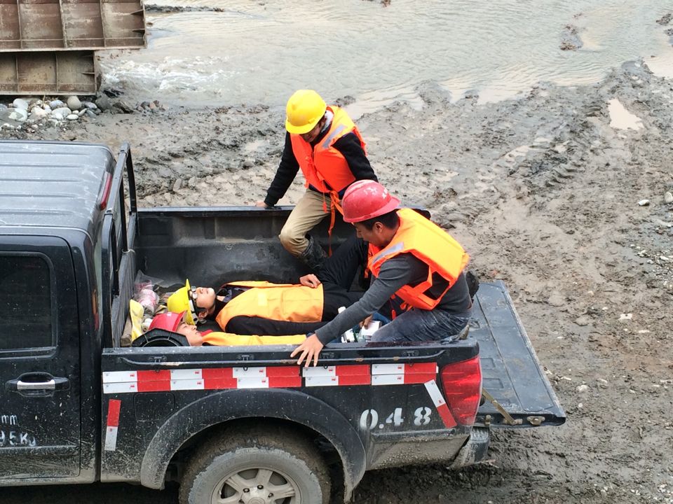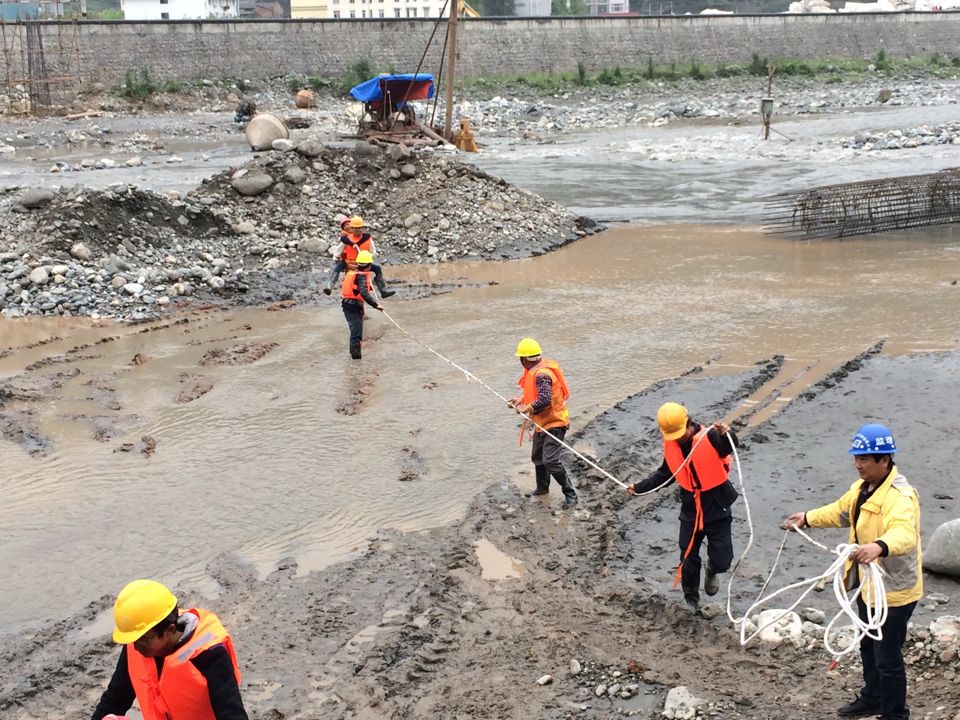 此次實地、實戰應急演練,指揮部調集了總監辦、施工單位共46人組成搶險組、救援組、材料保障組等應急搶險指揮機構,施工單位200余工人參與了此次演練。按照統一部署,所有人員各司其職,迅速趕赴“受災區域”對“圍困人員”、“受災機械”進行施救。