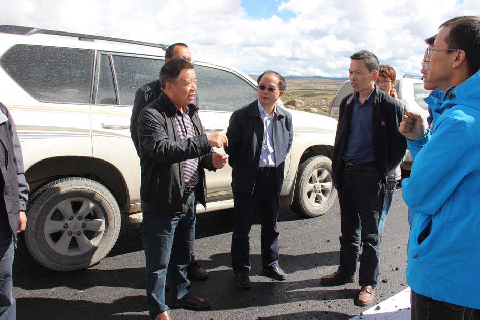 2014年8月28日至29日,四川省交通運輸廳張琪副廳長、廳公路局于天才副局長一行調研公司甘孜州工程項目建設,并看望慰問了奮戰在高原一線的建設職工。