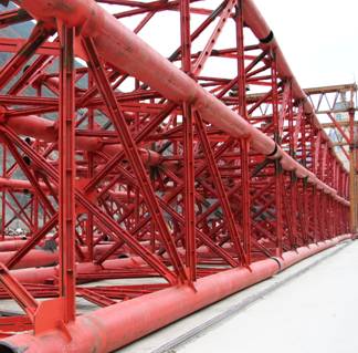 目前,兩項目四川岸引道路基已基本成型;均已完成主橋兩岸拱座、橋臺、交界墩施工,完成了過江運輸方案的實施,完成了主索塔的拼裝和扣掛系統錨定的施工,正在進行吊裝主索的布設。金陽對坪項目主拱圈勁性骨架已完成95%的加工和場內預拼裝,預計本月下旬開始吊裝;布拖馮家坪項目主拱圈勁性骨架已完成90%的加工和拼裝,預計本月20日開始吊裝。
