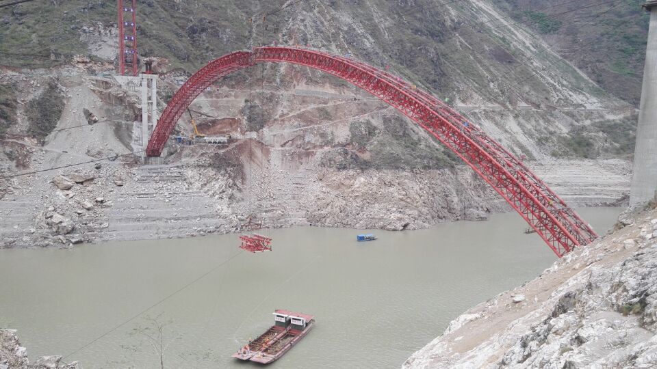 2017年4月26日,興蜀公司建設(shè)管理的涼山州最大跨徑金陽縣對坪金沙江“溜索改橋” 鋼管拱勁性骨架順利合龍,預(yù)示著“溜索時代”即將結(jié)束。該橋預(yù)計(jì)今年年底完成主體工程,明年3月建成通車。