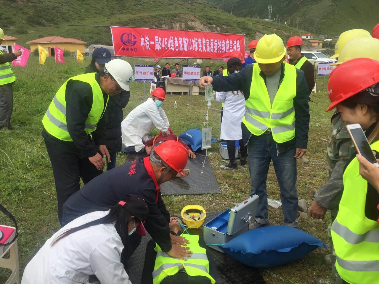為提升各參建人員的自我保護(hù)意識(shí)和防范高原病能力, 2017年7月25日,興蜀公司S454線色泥路指揮部組織各參建隊(duì)伍開(kāi)展了高原病防治應(yīng)急演練。