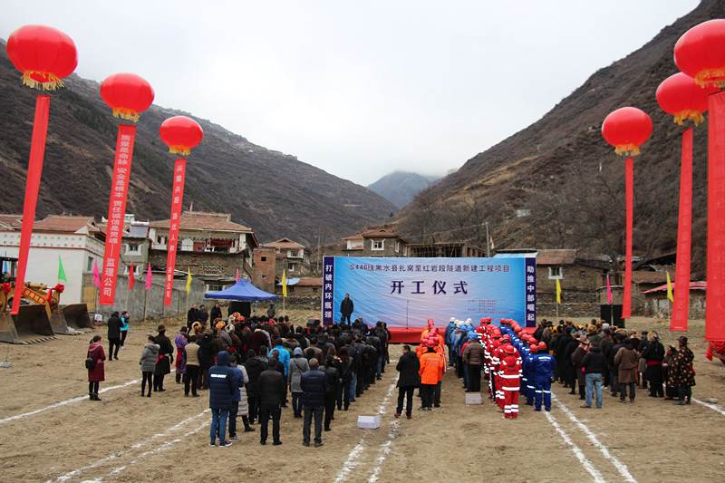 2018年1月6日,興蜀公司建設管理的S446線黑水縣扎窩至紅巖段隧道新建工程項目開工儀式在阿壩州黑水縣紅巖鄉舉行。參建單位分別進行了表態發言,決心按期將扎紅隧道建設成為交通扶貧示范工程。