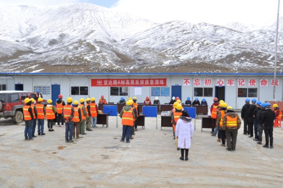 G345線宜達路位于甘孜州石渠縣境內,平均海拔在4000米以上。宜達路建設指揮部組織項目參建人員現場講解了醫療救助常識,示范了氧氣瓶的使用,配備并發放了藥品,并在四川路橋A標項目部開展了高原反應應急演練,各演練小組進行了事故模擬救援和人員疏散,及時將“傷員”送往項目部醫療室搶救。本次演練進一步鍛煉了各參建單位的組織協調能力和應急處置能力,提高了參建人員的安全防范意識。