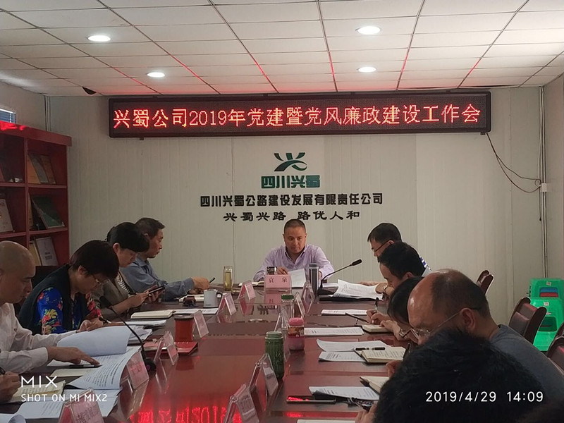 4月29日,公司黨委組織召開2019年黨建暨黨風廉政建設工作會。會議由公司黨委委員、紀委書記、監事會主席李崇明主持,公司領導班子成員,各部門負責人,各黨支部書記、支部委員出席會議。會議傳達學習了十九屆中央紀委三次全會、省紀委十一屆三次全會、省直機關工委有關會議以及廳、廳公路局2019年黨建暨黨風廉政建設工作會議精神,開展了2018年黨支部書記述責述廉測評,簽訂了黨風廉政建設責任書,全面總結了2018年黨建暨黨風廉政建設工作,對2019年黨建暨黨風廉政建設工作作了全面部署。