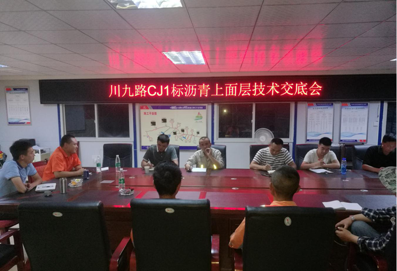 此次鋪筑K10+600~K11+600段全幅,為確保一次性鋪筑成功,川九路指揮部組織JL總監辦、CJ1合同段項目經理部進行瀝青混凝土上面層施工技術交底,對路面施工作業人員進行安全技術培訓,要求各參建單位嚴控工程質量,尤其注意路面平整度等關系行車舒適性的關鍵指標。阿壩州交通運輸局、興蜀公司對首件工程施工進行現場指導。