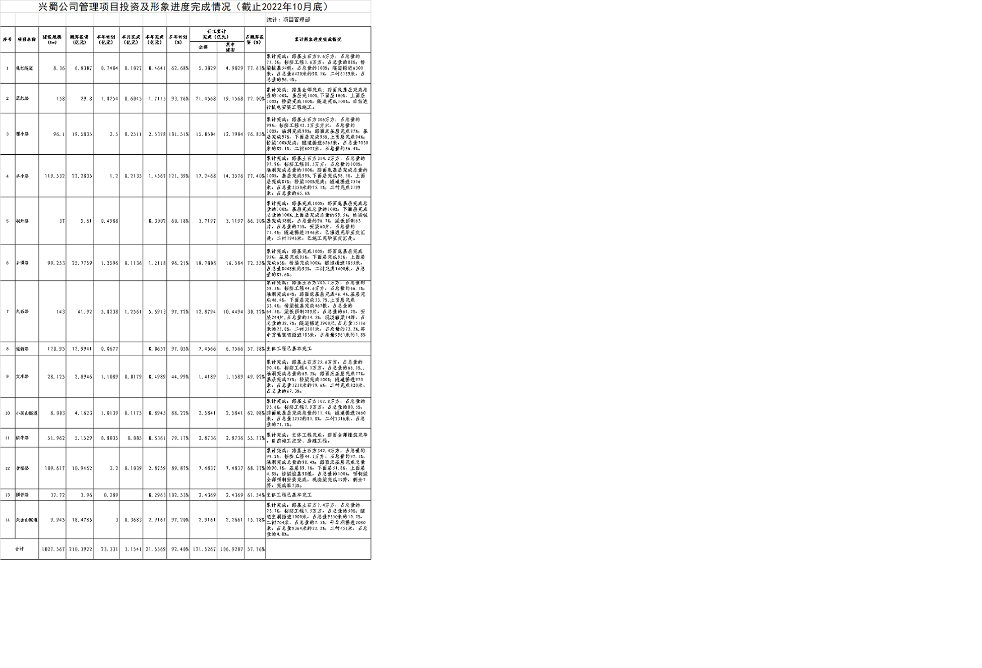 興蜀公司管理項目投資及形象進度完成情況(截止2022年10月底)