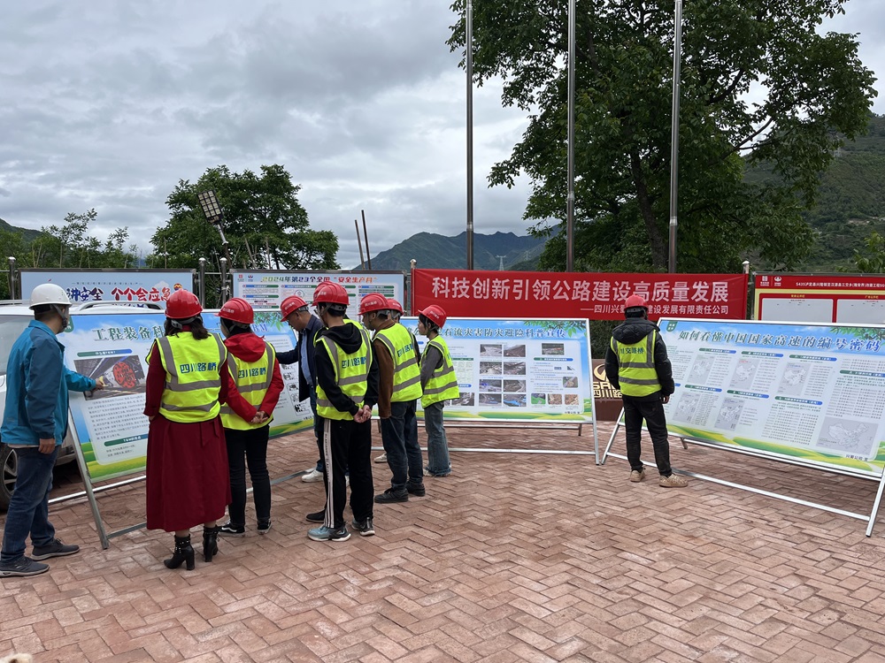 為深入學習貫徹習近平總書記重要指示精神,大力弘揚愛國、創新、求實、奉獻、協同、育人的科學創新精神,營造尊重科學、崇尚創新的社會環境,為建設科技強國匯聚智慧和力量。在2024年5月27日至6月2日全國“科技活動周”期間,興蜀公司總工辦精心籌劃,巧妙布置,會同九石路、瀘漢路指揮部在代建項目一線工地現場開展以“科技創新引領公路建設高質量發展”為主題活動,活動通過布設交通科普展板,向一線施工人員科普宣傳了“在建公路泥石流災害防災避險”、“如何看懂中國國家高速的編號密碼”、“認識TBM”方面知識。以豐富的圖文展示和宣傳資料,有效地傳達科技創新對工作和生活的重要性。同時,這些科普知識也可以提高施工人員對工地安全性正確識別,激發一線員工的創新動力,推動科技創新在實踐中的持續探索。