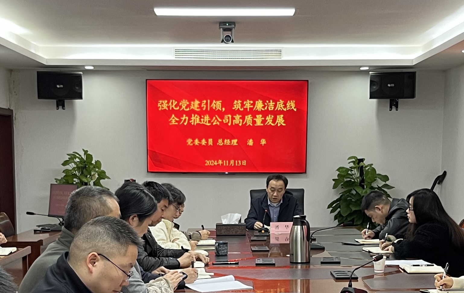 會上,潘華總經理與參會人員就生產經營開發工作及職工關心的問題進行了溝通交流,講授了“強化黨建引領,筑牢廉潔底線,全力推動公司高質量發展”專題黨課。潘華總經理講授專題黨課時指出:一要強黨性、鑄忠誠,強化黨建引領。要始終堅持“不忘初心、牢記使命”,加強黨性修養,堅定理想信念不動搖,矢志不渝;要做到對黨絕對忠誠,重實干、敢擔當;要強化黨建引領公司生產經營中心工作高質量發展。二要嚴黨風、守黨紀筑牢廉潔底線。結合公司生產經營工作具體環節,黨風廉政建設要長期抓、反復抓,常抓不懈久久為功;要始終堅持治標和治本相結合,要學紀知紀明紀守紀,要著力加強制度建設這一重要工作;要落實好責任制,形成齊抓共管的合力,既要加強自我監督,還要接受他人監督,也要發揮監督他人的責任,合力打造“清廉交通”興蜀品牌。三要樹導向、重行動,全力推動公司各項生產和經營開發工作落實見效;要堅持以問題為導向,補短板、強弱項;要堅持以目標為導向,強黨建引領、強廉潔保障、強工作實效;要堅持以結果為導向,黨建出品牌、廉潔零問題、工作出成效;要堅守好意識形態陣地,切實扛牢意識形態工作職責。
