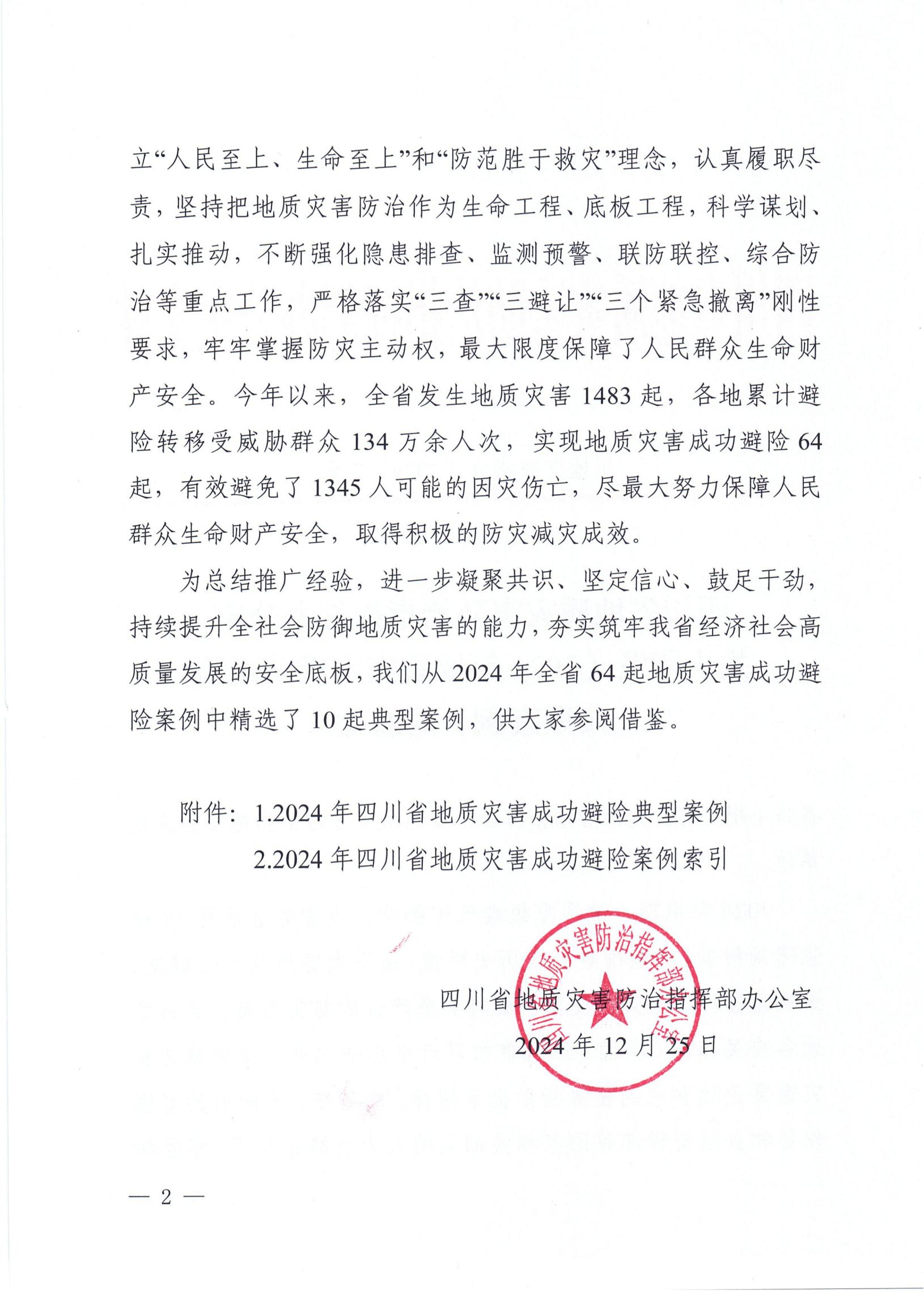 這一案例的主要經驗是地企聯動防災機制健全,各方責任落實到位,在預警發布后,受威脅群眾和轄區施工企業職工能及時安全轉移并妥善安置。該成功避險經驗入選四川省地質災害防治指揮部《關于印發2024年地質災害成功避險典型案例》的通知(川地災防指辦[2024]7號)。