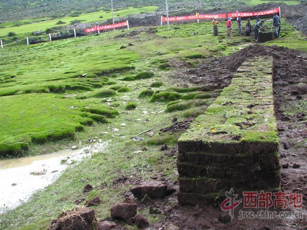 理亞路建設(shè)者劃出網(wǎng)格保護(hù)脆弱的高原生態(tài)草坪腐殖層