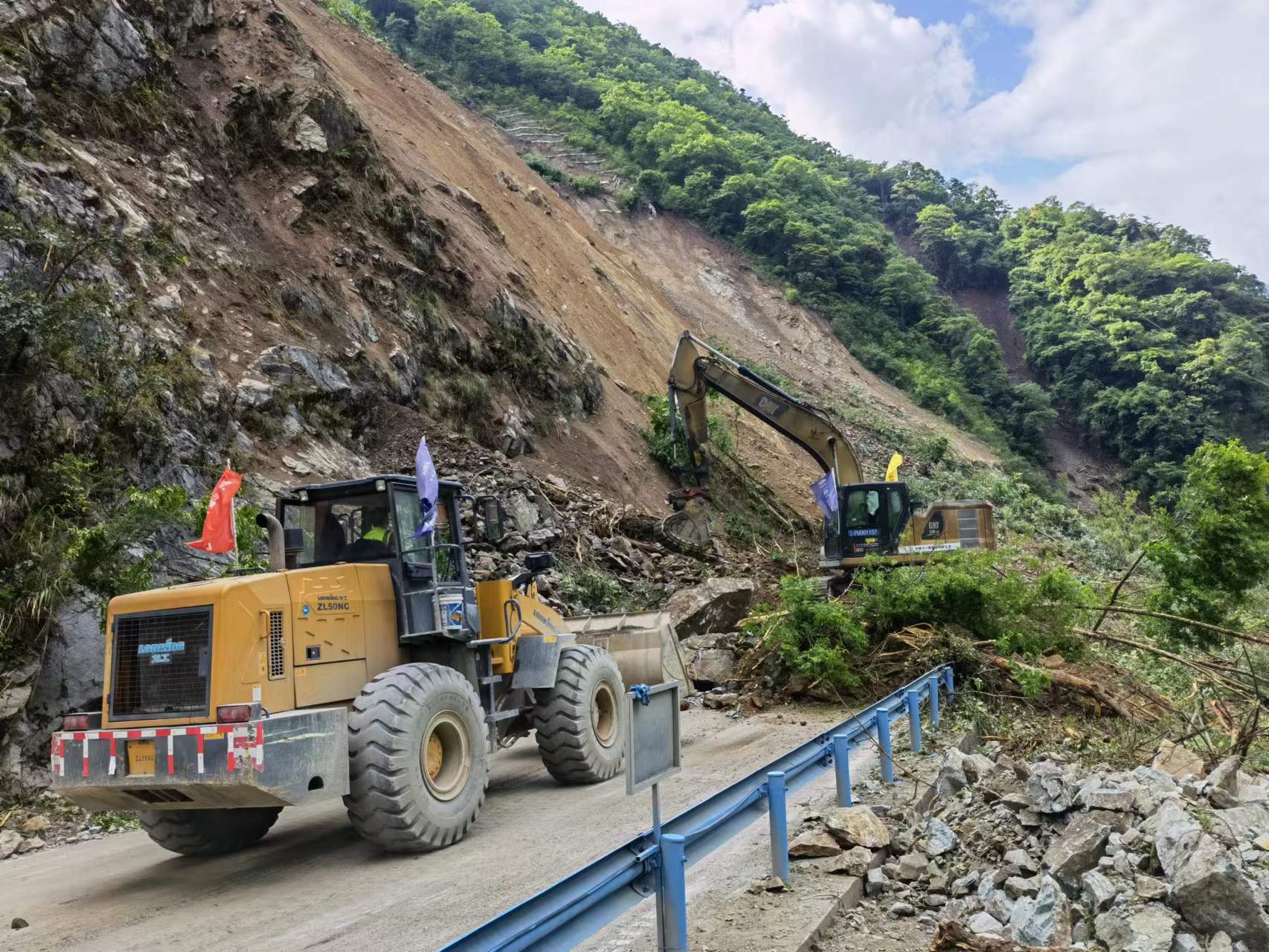 興蜀公司組織帶領施工、監理等18人,設備3臺(裝載機2臺、挖掘機1臺)于6月1日18時25分開展道路搶通工作。截止6月2日上午8點,夾金山隧道進口端至蜂桶寨鄉新華村隧道60余公里道路已全部搶通,目前僅剩余國道351線新華隧道出口端300米(洞內150米、洞外150米)未搶通。目前,興蜀公司正在全力以赴攻堅搶通該路段。