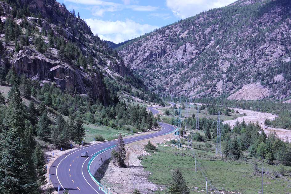 S217/216線理塘至稻城亞丁公路位于甘孜州理塘縣及稻城縣境內,路線起于理塘縣東,與G318線相接,從理塘縣經桑堆至稻城縣香格里拉鎮,是通往“金沙江流域大香格里拉核心區域——亞丁”的必經之路。路線全長222.466km,采用二級、三級公路技術標準。二級公路標準路段,路基寬度10m,路面寬度7.0m,設計行車速度40-60km/h;三級公路標準路段,路基寬度8.5m,路面寬度7.0m,設計行車速度30-40km/h。路面采用瀝青混凝土,厚度為4cm+5cm。