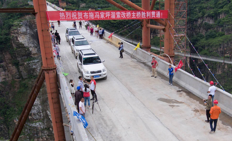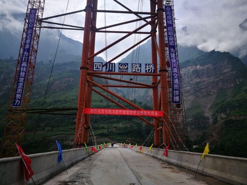 2018年7月10日,在新華社、四川電視臺等多家主流媒體的共同關注和川滇兩地人民的共同見證下,多輛汽車駛入大橋,不到2分鐘即到達對面云南岸,標志著布拖金沙江溜索改橋主橋正式貫通,具備通車能力。