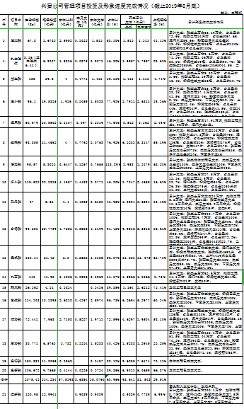 興蜀公司管理項目投資及形象進度完成情況(截至2019年8月底)