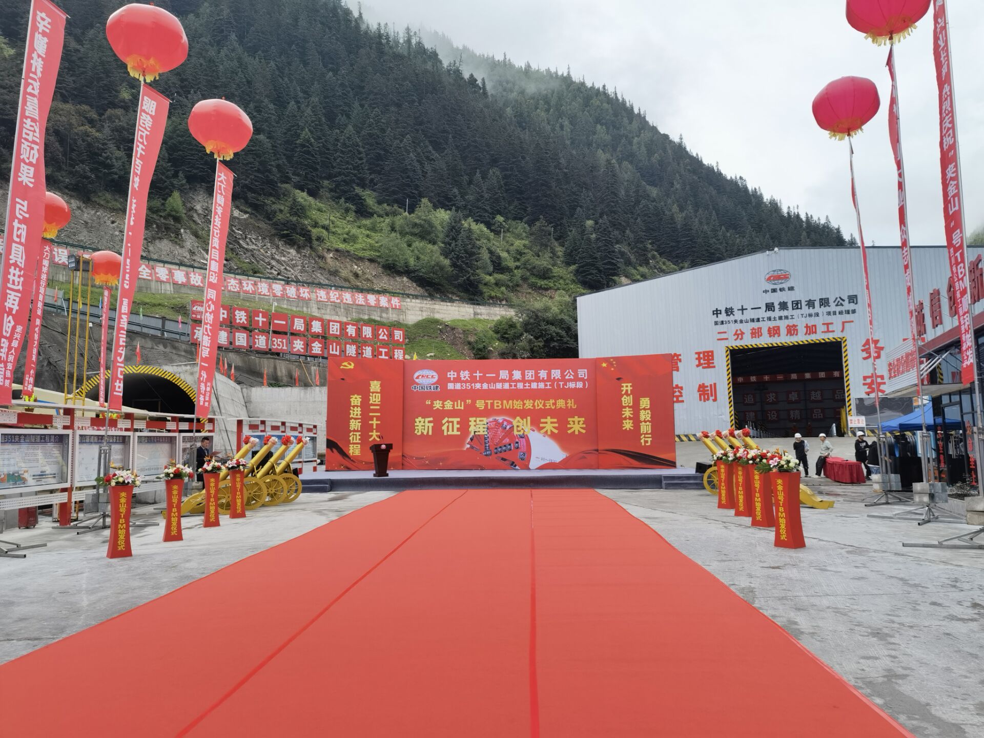 6月26日,興蜀公司代建管理的國(guó)道351夾金山隧道國(guó)內(nèi)首臺(tái)應(yīng)用于普通干線公路施工的“夾金山”號(hào)TBM在夾金山隧道提前成功順利始發(fā)。這是我國(guó)普通干線公路隧道TBM施工工法的首次嘗試,開創(chuàng)國(guó)省普通干線公路隧道機(jī)械化施工的先河。“夾金山”號(hào)TBM為全斷面敞開式巖石掘進(jìn)機(jī),直徑7.93m,設(shè)備全長(zhǎng)215m,總重量1600噸,可實(shí)現(xiàn)自動(dòng)開挖、出碴、初期支護(hù)等功能于一體,具有掘進(jìn)速度快、安全環(huán)保、施工質(zhì)量高等特點(diǎn),施工效率是鉆爆法的2至3倍。“夾金山”號(hào)TBM的提前成功始發(fā),可以加快平導(dǎo)洞的貫通,可以為主洞開挖增加四個(gè)以上的作業(yè)面,為夾金山隧道順利貫通提供有利保障,切實(shí)解決藏漢百姓冬季通行問題,推動(dòng)革命老區(qū)振興發(fā)展。